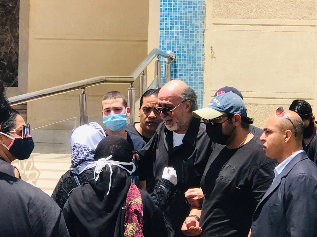 انهيار شقيقه الفنان الراحل سمير غانم لحظة وصول جثمانه إلى مسجد المشير طنطاوي بالتجمع الخامس.
