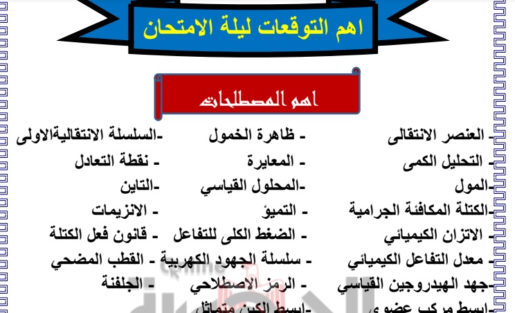 تقدم الجمهورية اون لاين اهم التوقعات في الكيمياء للثانوية العامة والتي لن يخرج عنها امتحان اخر العام من اعداد الاستاذ احمد المصري.