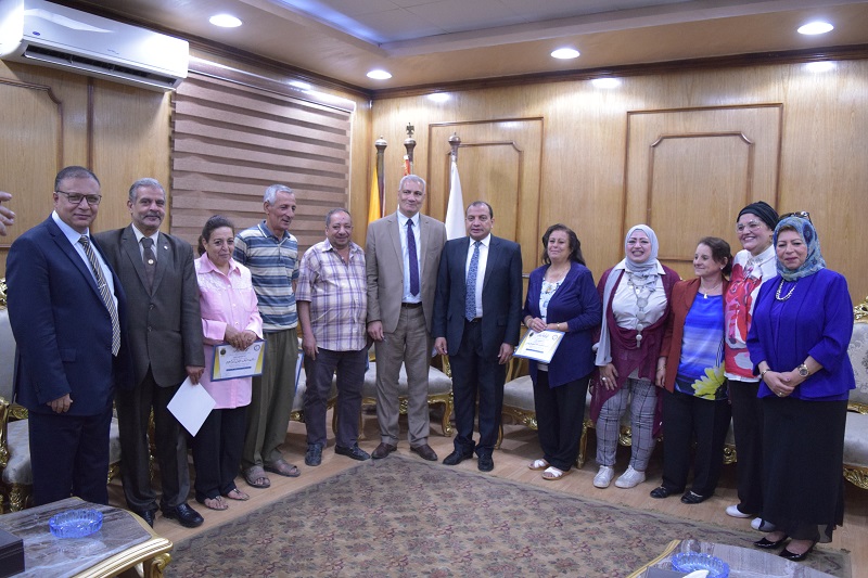 وأكد الدكتور منصور ان الجامعة لا تدخر جهدا فى دعمهم لاسيما وهم من قضوا سنوات طويلة من الكفاح ،والعمل والمشاركة الفعالة فى خدمة و تنمية الجامعة ، مع الحرص على استمرار العلاقة الطيبة التي تربط أبناء الجامعة جميعا كأسرة واحدة، بما يصب فى مصلحة العمل حيث تم تكريم السادة العاملين بالجامعة المحالين للمعاش خلال مايو الجارى وهم: ليلى خليل إبراهيم كبير اخصائيين تغذية وتدبير منزلي إدارة الجامعة وماري حنا غبور جرجس كبير كتاب كلية الصيدلة ومحسن أحمد إسماعيل اولى حرفي كلية تعليم صناعي 2017وسمية عزت كردي الجبالي كبير اخصائيين تنمية إدارية كلية تعليم صناعي و مصطفى عبد العزيز حمزة كاتب أول كلية التربية.وسمية حمدان أحمد قاعود كبير اخصائيين شئون مالية إدارة الجامعة و نبيل بديع شاكر ميخائيل أولى تغذية زراعة وتغذية المدن الجامعية و سلوى فتحي إسرائيل غبريال مدير عام إدارة عليا إدارة الجامعة وحسام الدين شاكر محمد كبير اخصائيين تغذية وتدبير منزلي مدير دار الضيافة وسعد سليمان عبد الفتاح كبير اخصائيين تنمية إدارية كلية سياحة وفنادق.