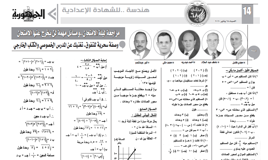 تواصل بوابة الجمهورية اونلاين، تقديم خدماتها لطلاب وطالبات الصف الثالث الاعدادى، ومراجعة ليلة الامتحان فى الهندسة للترم الاول للعام الدراسى 20202019، من ملحق الجمهورية التعليمى.