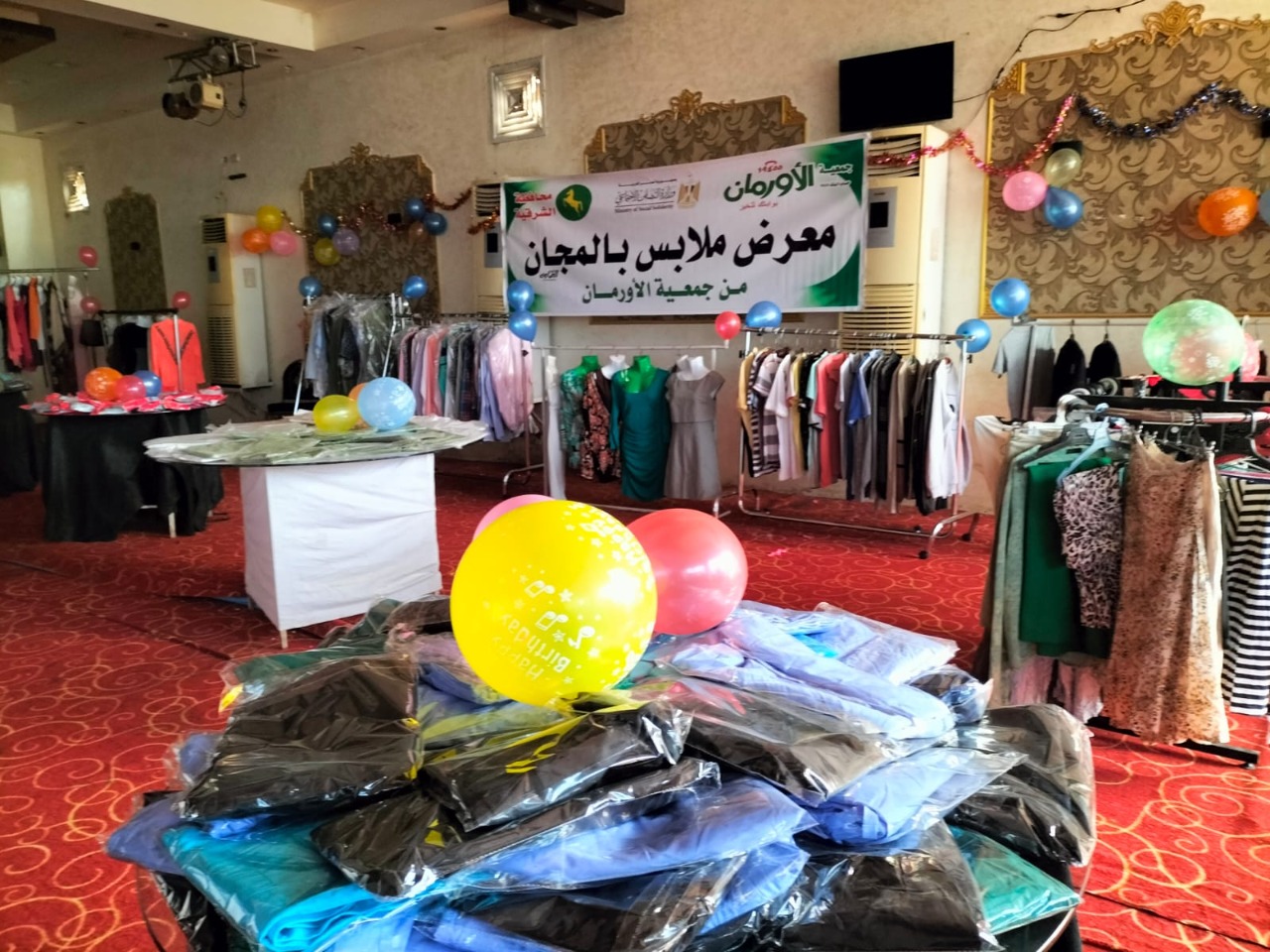 الاورمان تنظم معرضا للملابس الجديدة بالمجان وتوزع 2800 قطعة ملابس وأحذية على أهالى قرى أبوكبير