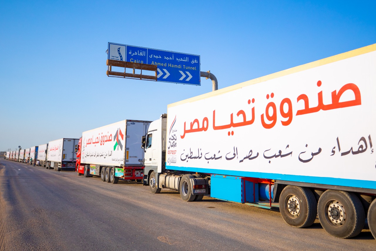 قافلة صندوق تحيا مصر تعبر نفق الشهيد أحمد حمدي في الطريق لقطاع غزة