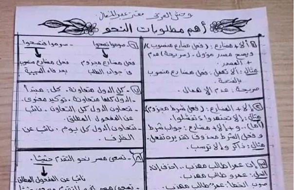 ملخص النحو للثانوية العامة في أربع ورقات فقط