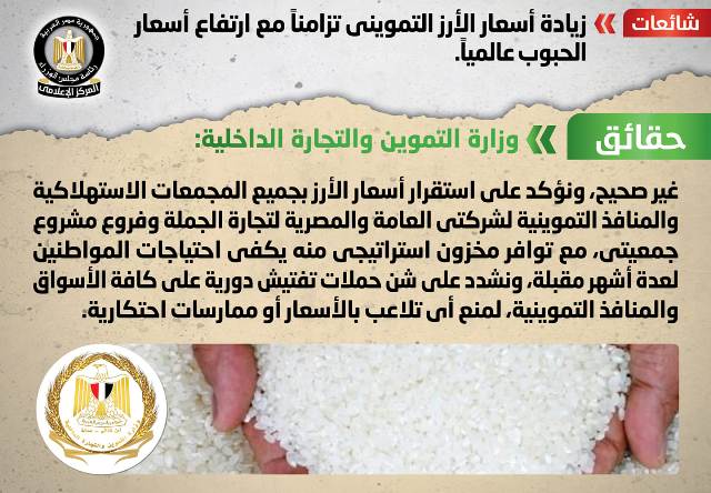 الحكومة تنفى زيادة أسعار الأرز التمويني تزامناً مع ارتفاع أسعار الحبوب عالمياً