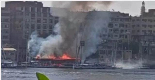 حريق هائل بمطعم عائم على كورنيش أسوان