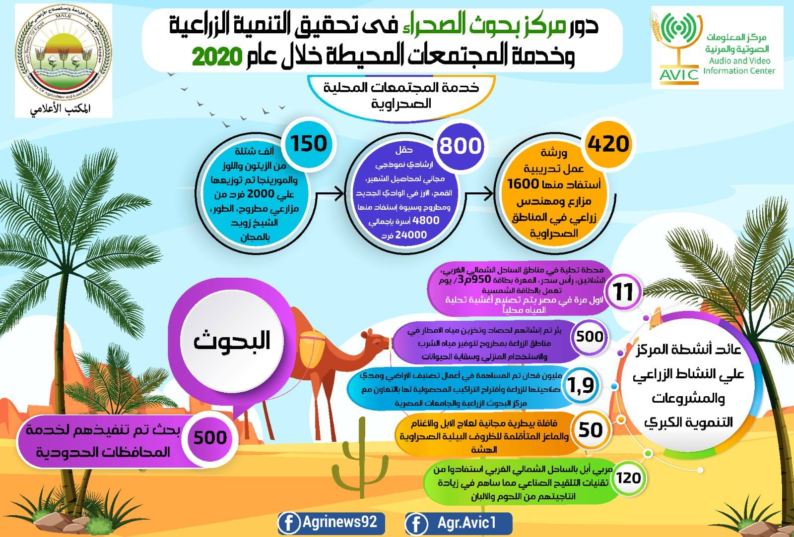 أنفوجراف| الزراعة: بحوث الصحراء انشأ 11 محطة لتحلية المياه خلال 2020