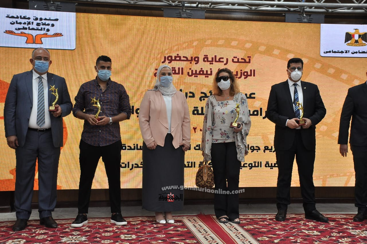 وزيرة التضامن الاجتماعي تكرم يسرا ومحمد سامي وأيمن سلامة .. صور