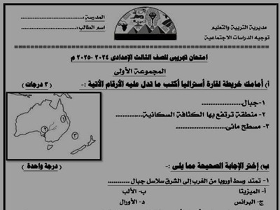 بوكليت امتحان الدراسات الإجتماعية للشهادة الإعدادية الترم الأول