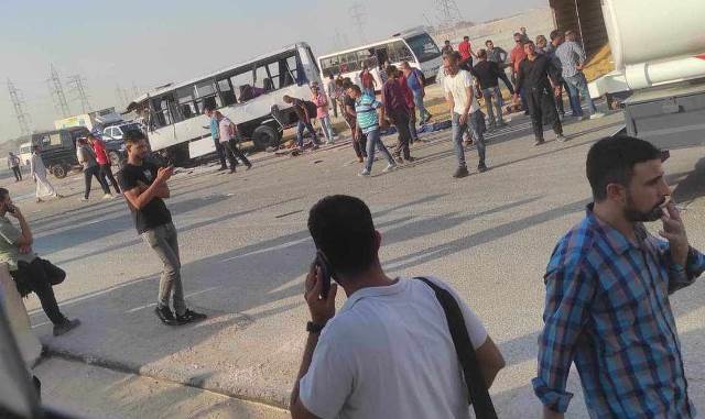 تصادم ميني باص ونقل تسبب في مصرع وإصابة ١٣ عاملا بالسخنة