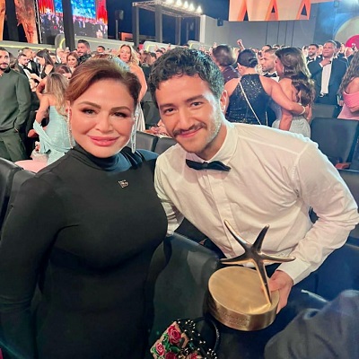 "هوليود للسينما العربية".. إلهام شاهين تهنئ أحمد حلمى بعد تكريمه