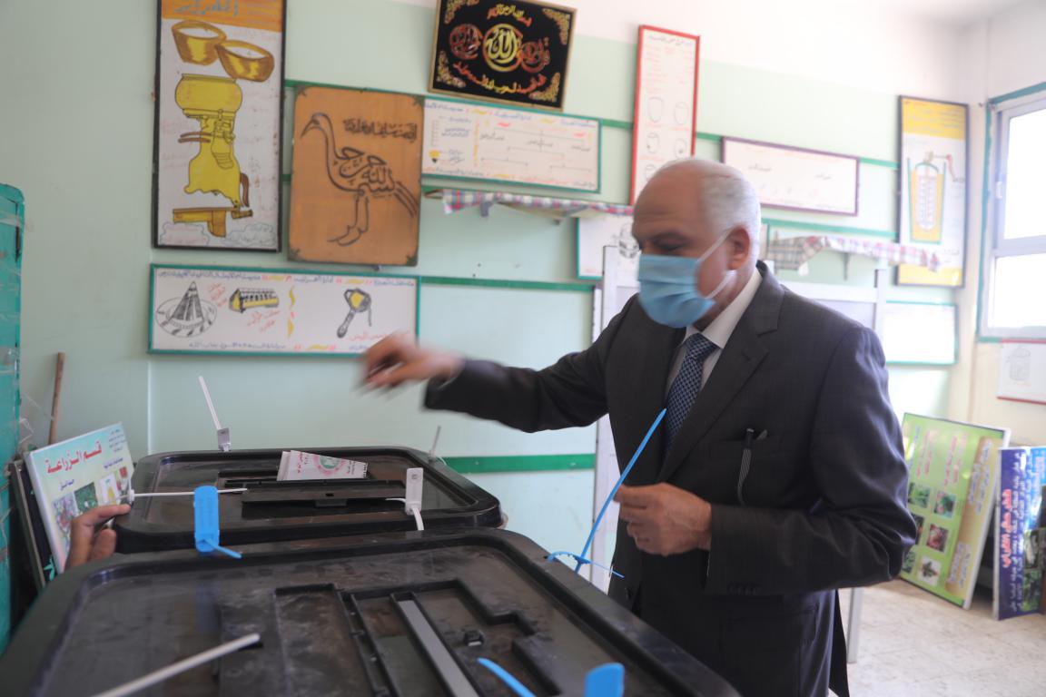 محافظ الجيزة يدلى بصوته فى إنتخابات مجلس النواب بمدرسة أم الابطال الثانوية