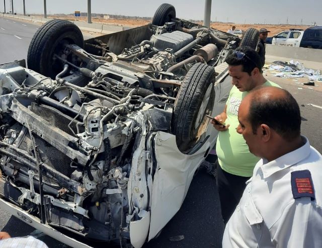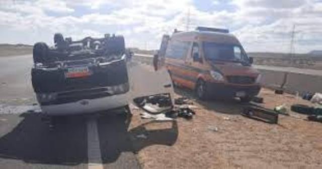 مصرع وإصابة 15 إثر إنقلاب ميكروباص بطريق العلمين فى البحيرة