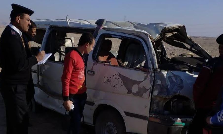 وفاة شابين واصابة 8 آخرين في إنقلاب ميكروباص بالصحراوي الشرقي ببني سويف