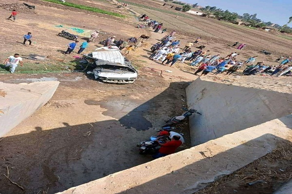 14 مصاب حصيلة إنقلاب ميكروباص في ترعة بطريق الإسماعيلية الزقازيق