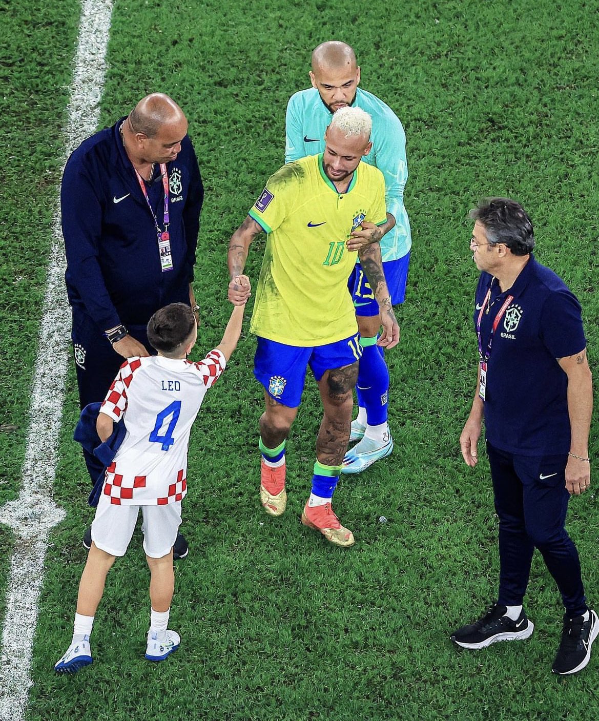 ابن الكرواتي إيفان بيريسيتش يواسى نيمار بعد خسارة البرازيل .. صور