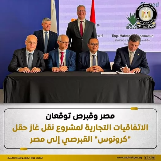 مصر وقبرص توقعان الاتفاقيات التجارية لنقل غاز حقل "كرونوس" لمصر
