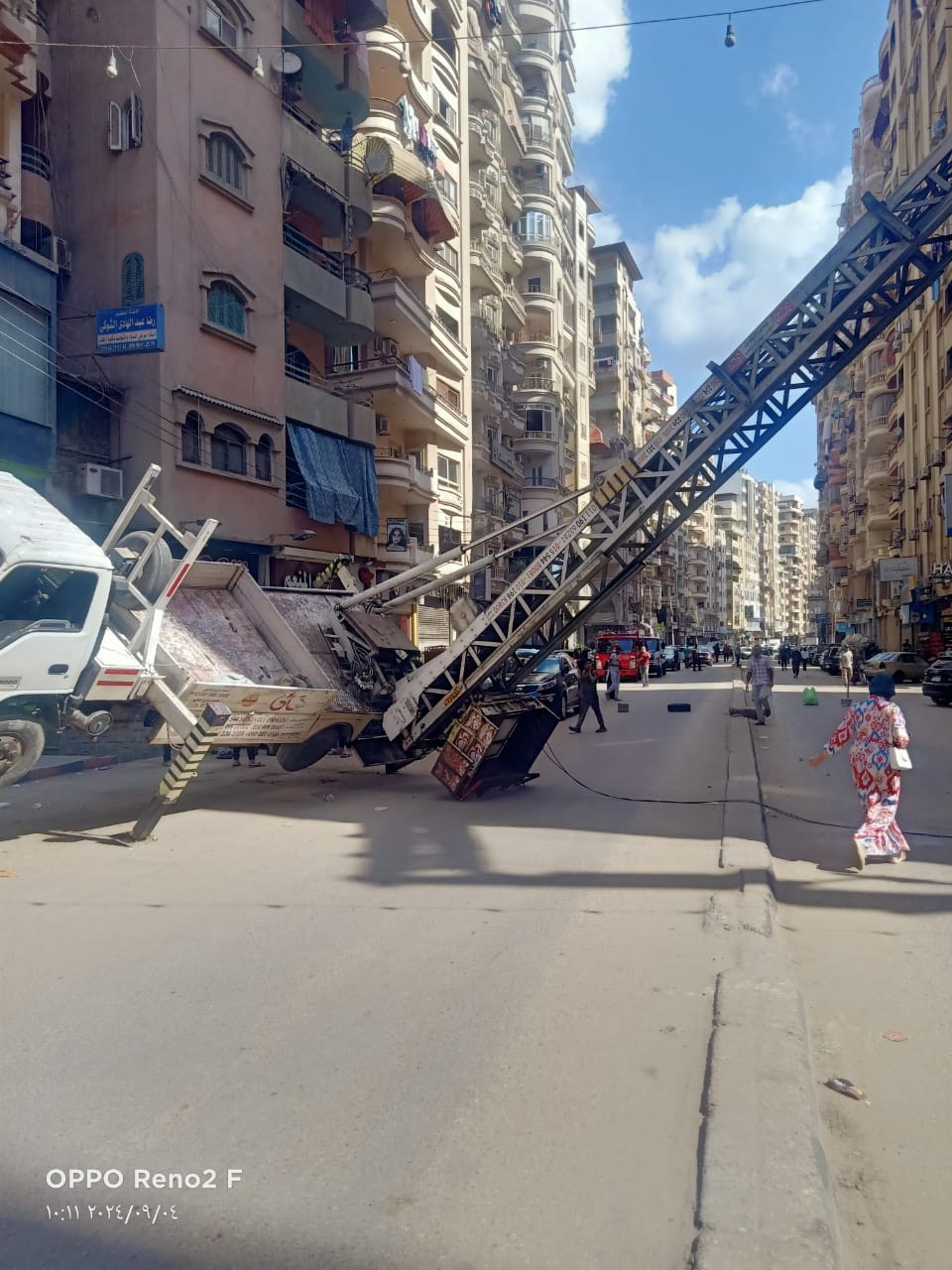 ذعر في المنصورة بعد سقوط ونش رفع اثاث على سيارة