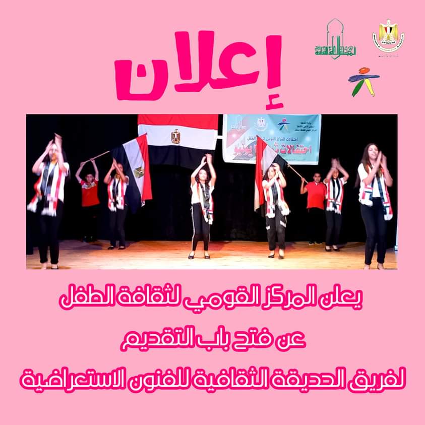 القومي لثقافة الطفل يفتح باب التقديم للانضمام لفريق الحديقة الثقافية للفنون الاستعراضية.