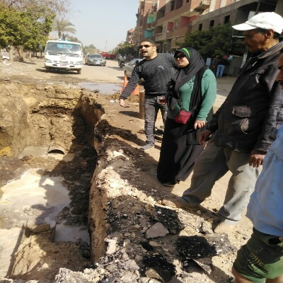 محافظ الجيزة يتفقد اصلاح كسر مفاجئ بخط مياه قطر ٦٠٠مم بالدقى