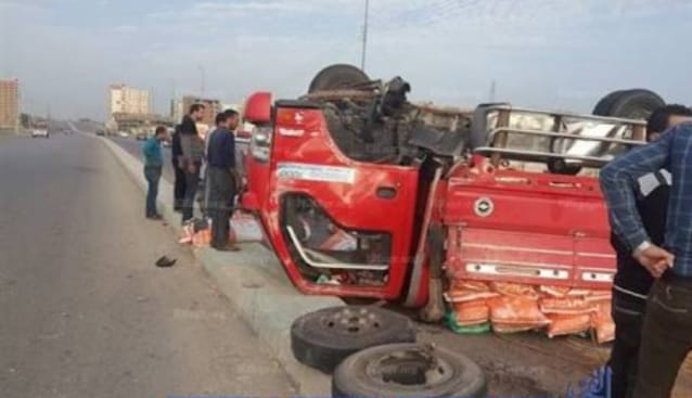 مصرع وإصابة ٣ أشخاص فى إنقلاب سيارة نقل اعلاف بالوادى الجديد