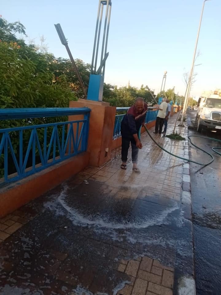 حملة نظافة وغسيل الأرصفة بكورنيش النيل وشارع خالد بن الوليد بمدينة الأقصر
