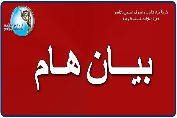مياه الأقصر تعلن عن إنقطاع المياه بنجع علوان بالطود لمدة ٨ ساعات
