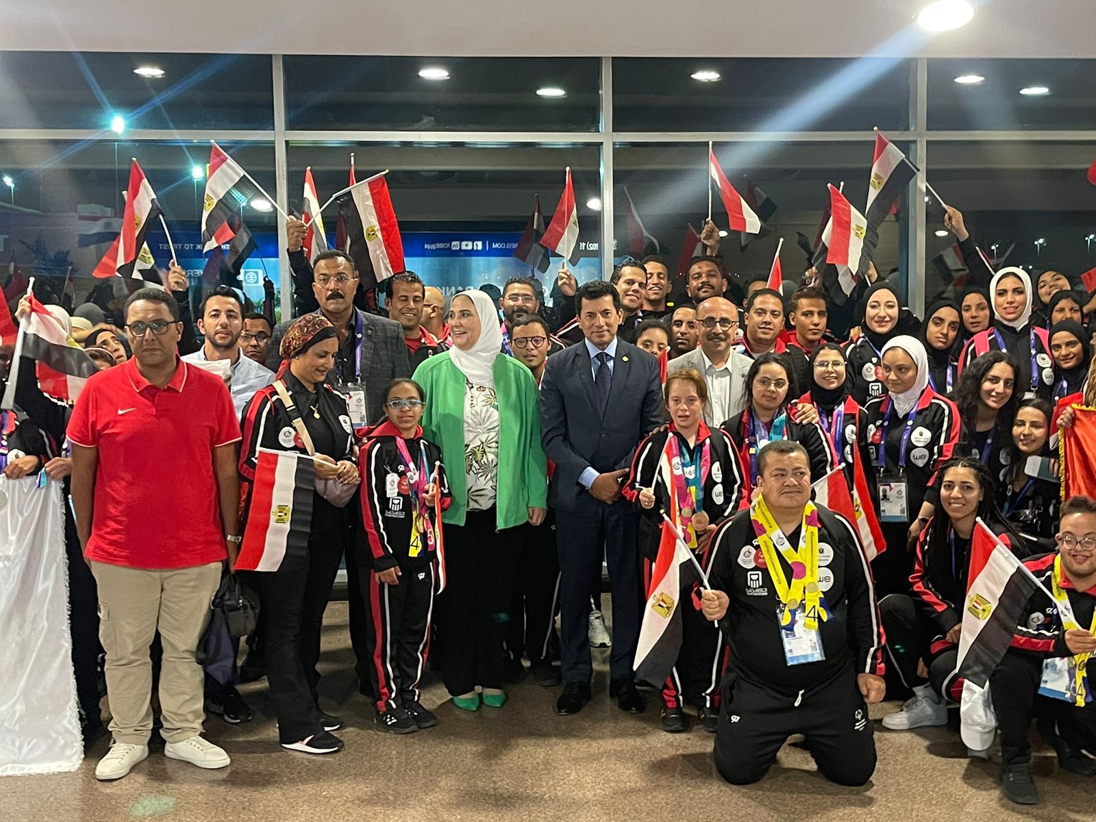 وزيراالشباب والتضامن يستقبلان بعثة الأولمبياد الخاص بمطار القاهرة