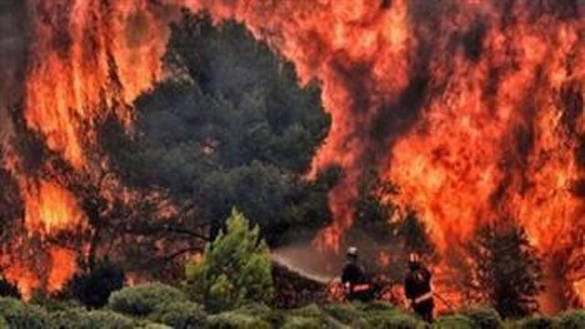 فرق الإطفاء تكافح حريقاً كبيراً في كورنثوس اليونانية