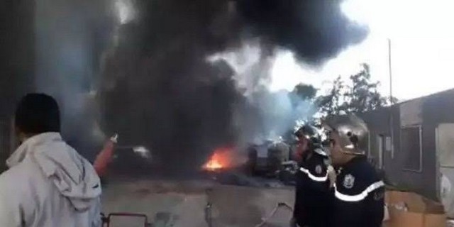 عناصر الإطفاء المصرية تساعد فى إخماد حريق مخازن المساعدات الفلسطينية