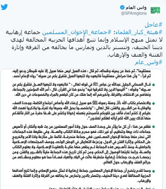 الافتاء المصرية تكشف عن موقفها من البيان السعودى حول مجموعة الاخوان المسلمين