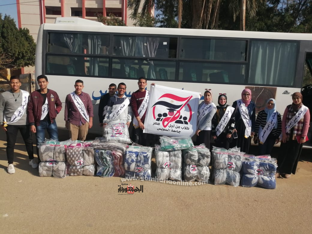 طلاب من اجل مصر بجامعة السويس يوزعون بطاطين على الاسر الاكثر احتياجا ..صور
