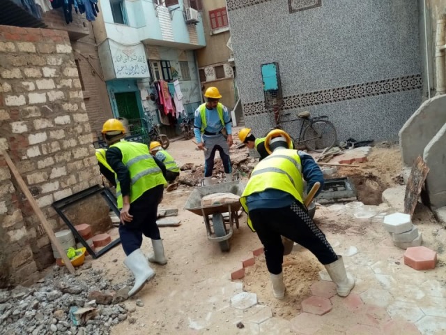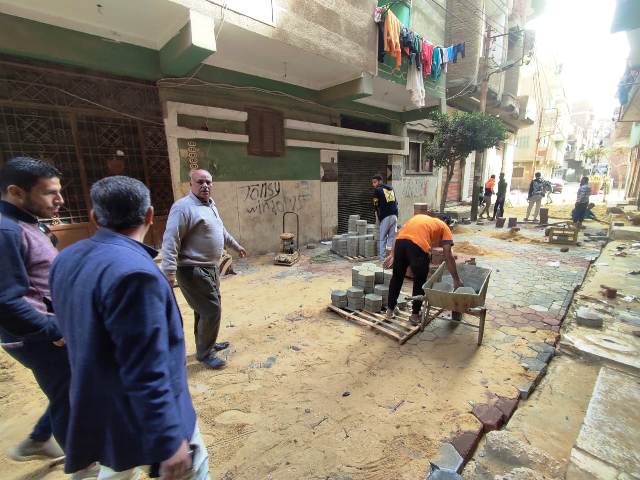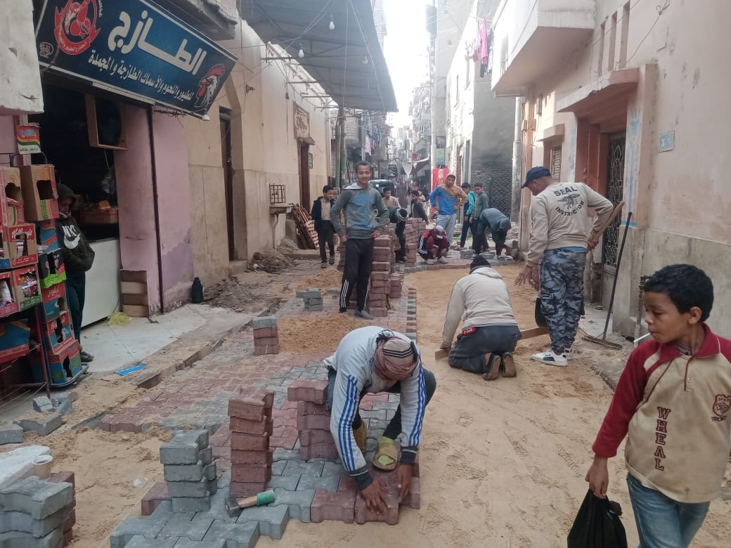 الزقازيق تتجمل ببلاط الانترلوك بالشوارع الفرعية