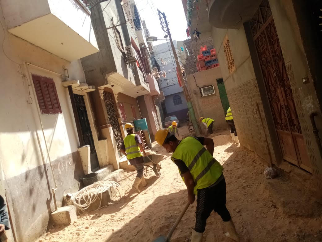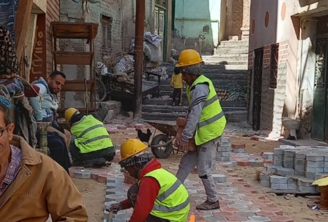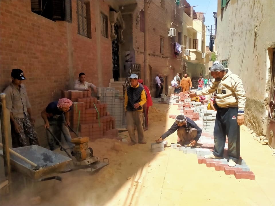 تركيب بلاط الانترلوك بالشوارع الضيقة في أسيوط