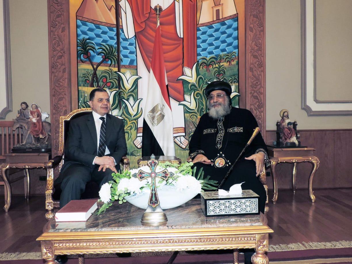 وزير الداخلية يزور الكاتدرائية المرقسية ويهنئ البابا تواضرس بأعياد الميلاد