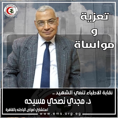 الأطباء تنعي الشهيد استشاري امراض الباطنه بالقاهرة بعد إصابته بكورونا