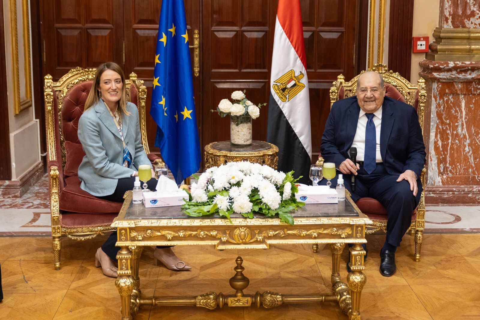 رئيس مجلس الشيوخ يستقبل رئيسة البرلمان الأوروبي والوفد المرافق لها