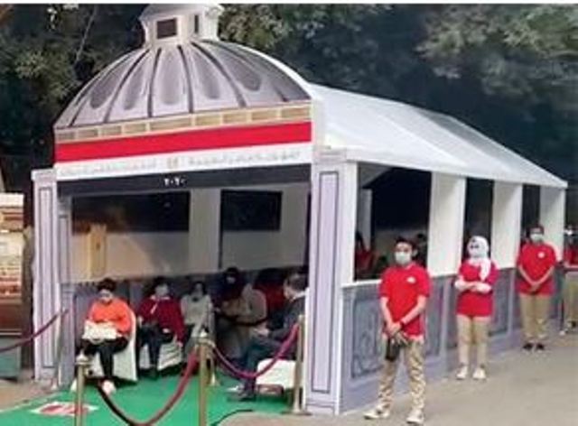 المقار الانتخابية بدائرة مصر الجديدة تتزين بنموذج لقبة البرلمان المصري .. صور
