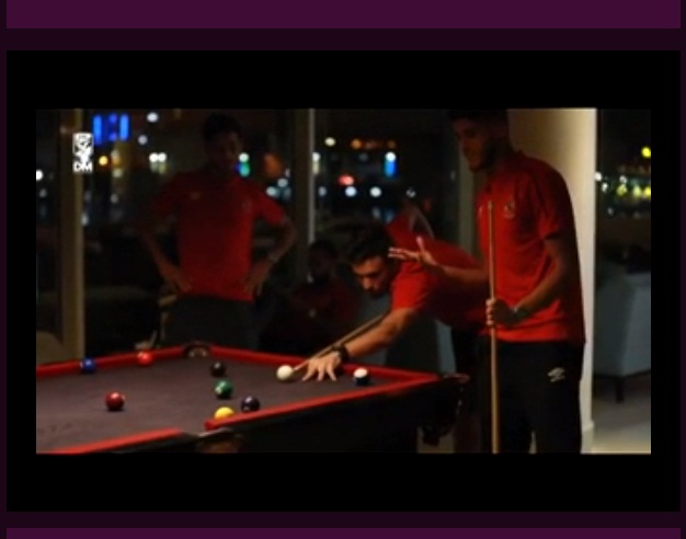 لاعبو الأهلى يحتفلون بخماسية أسوان بلعب البلياردو