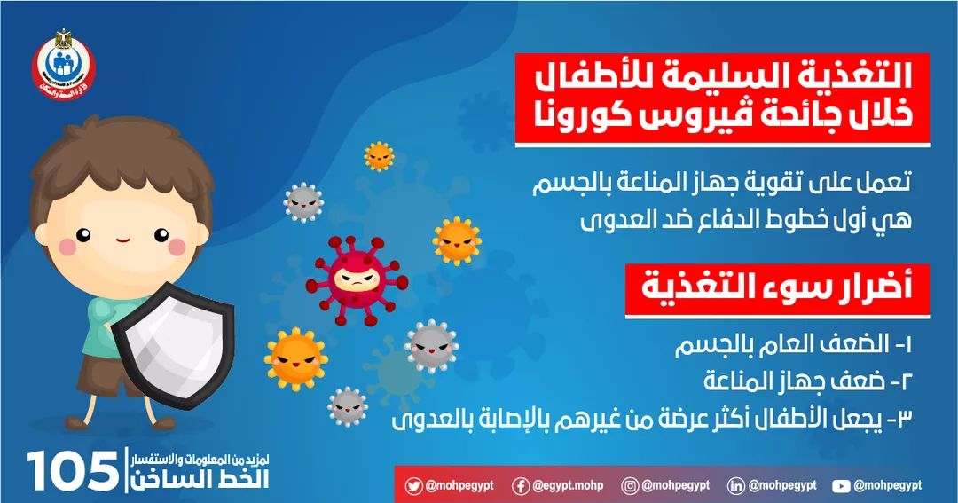 الصحة : التغذية السليمة لطفلك خلال جائحة كورونا تقوي مناعته وتحميه من الإصابه بالعدوى