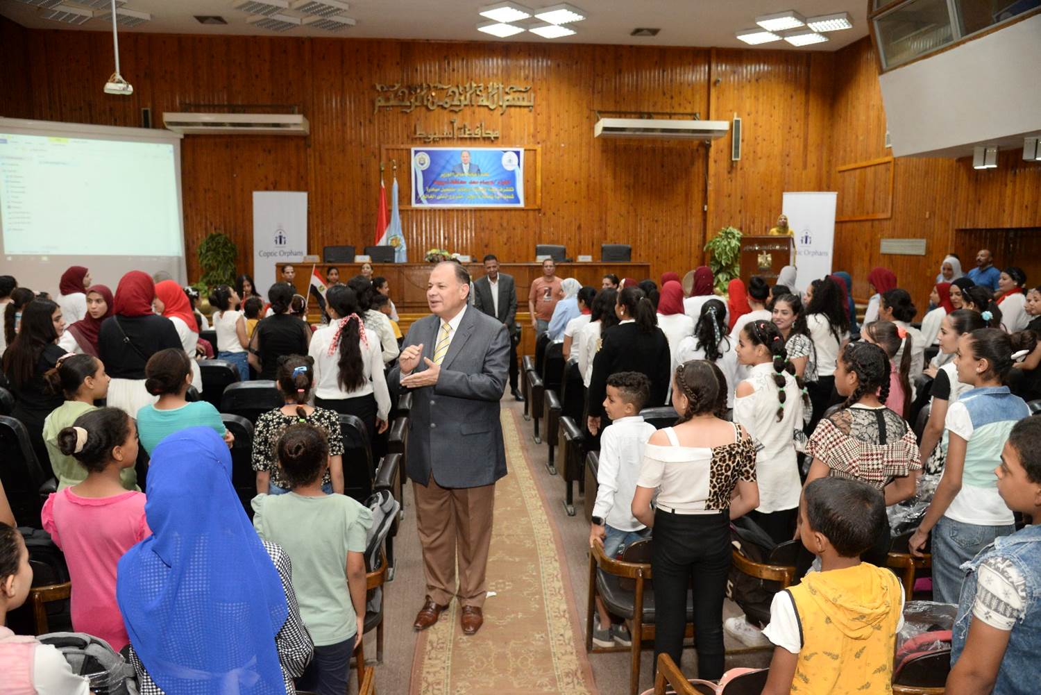 محافظ أسيوط يسلم شنط وأدوات مدرسية لعدد 500 من التلاميذ الأيتام
