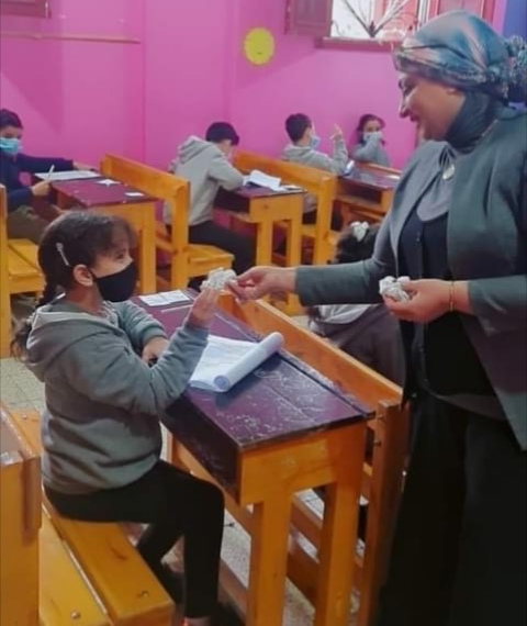 مديرة مدرسة بالاسماعيلية توزع الحلويات علي التلاميذ قبل الامتحان