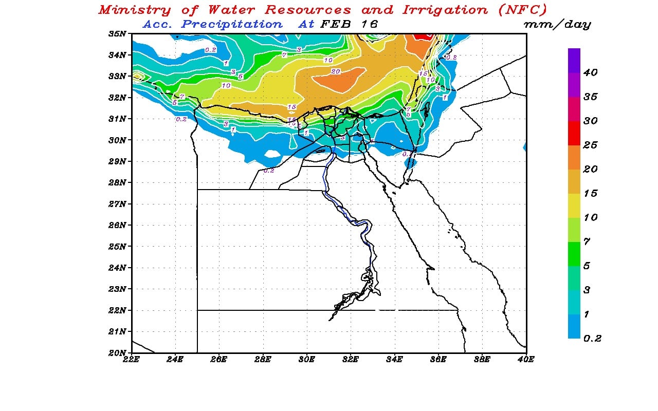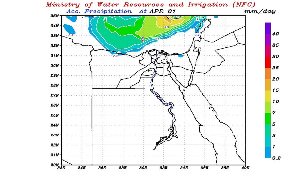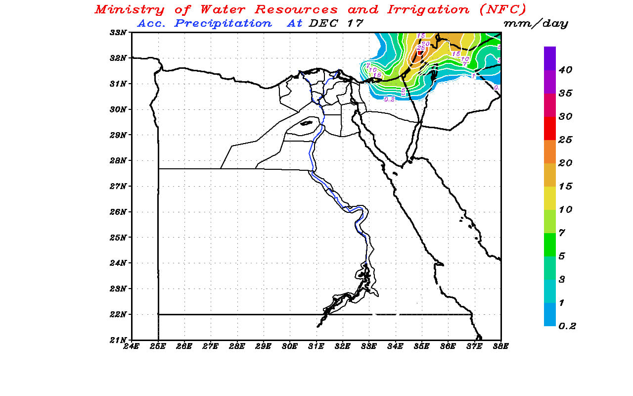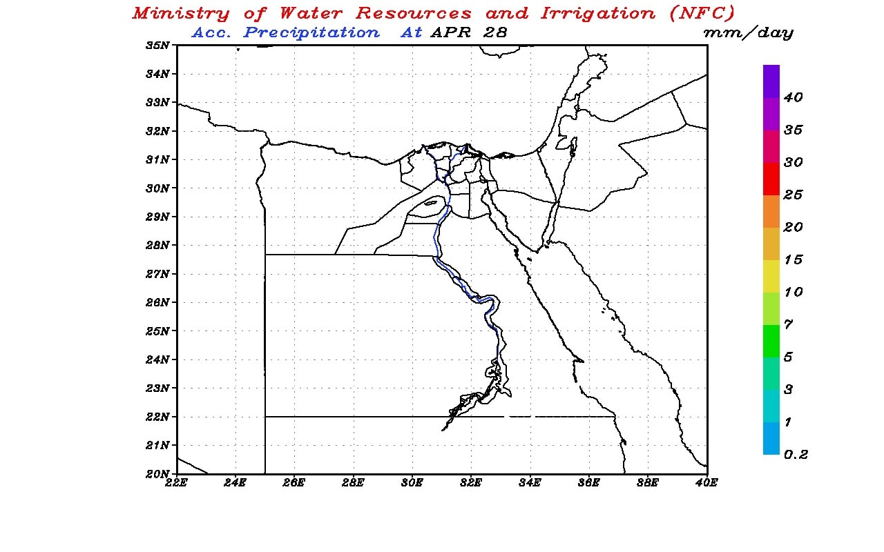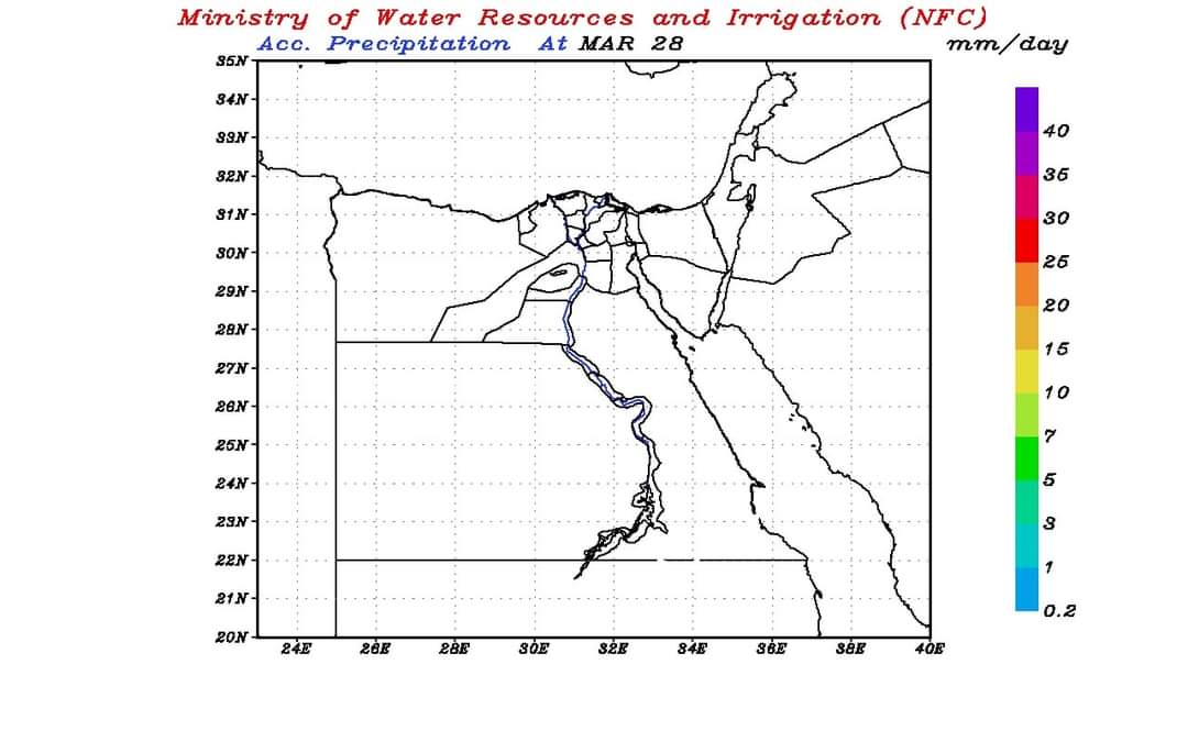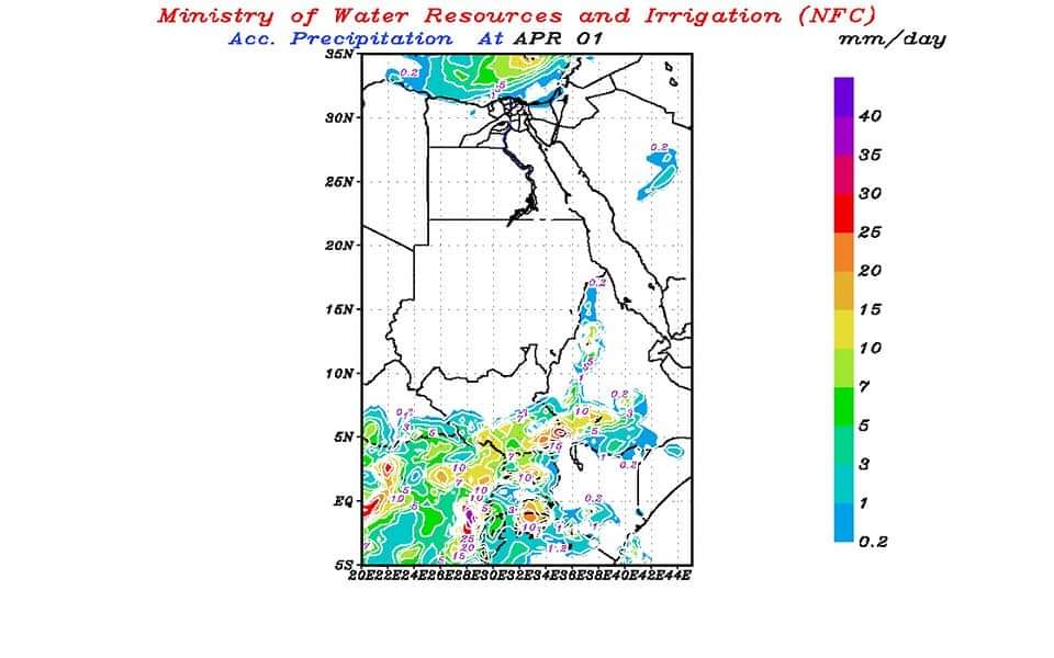 مركز التنبؤ بفيضان النيل يحدد اماكن سقوط الامطار