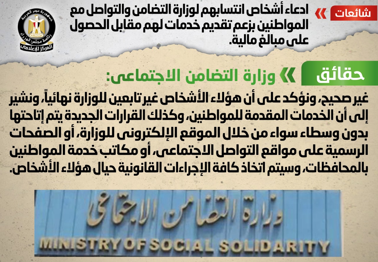 ادعاء أشخاص انتسابهم لوزارة التضامن والتواصل مع المواطنين بزعم تقديم خدمات لهم مقابل الحصول على مبالغ مالية.. "شائعة"