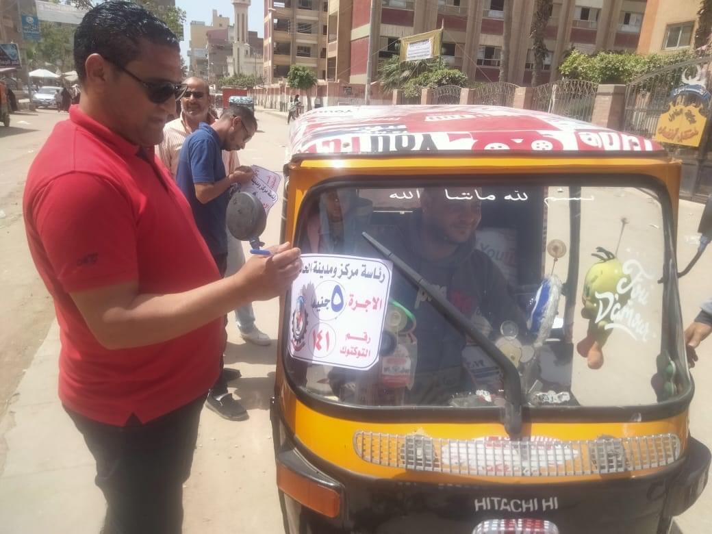 إستكمال وضع إستيكر بالأجرة المقررة بعربات التوكتوك بقرى دمياط