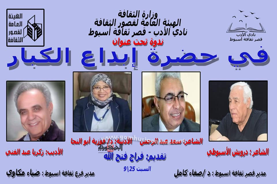 "ابداع الكبار.. وملتقى أدباء الثمانينات والتعسنيات" فعاليات السبت القادم بنادي أدب اسيوط