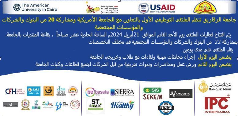 جامعةالزقازيق تنظم الملتقى التوظيفى بالتعاون مع الجامعة الأمريكية