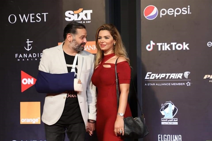 بالجبيرة.. أول ظهور لأمير شاهين وزوجته على السجادة الحمراء بعد إصابته فى ذراعه