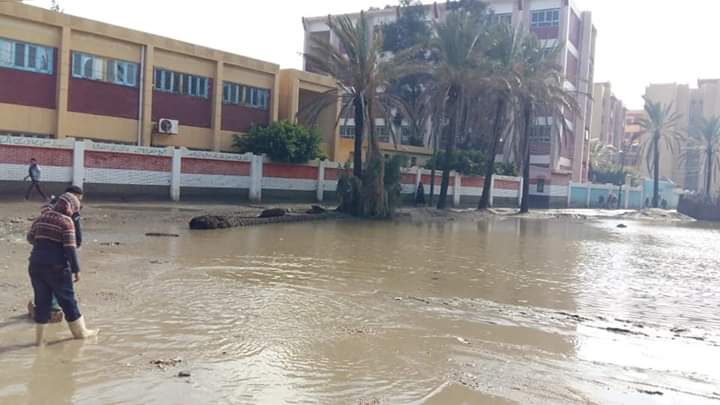غرق مجمع المدارس بالجزيرة الخضراء بمطوبس في مياه الأمطار