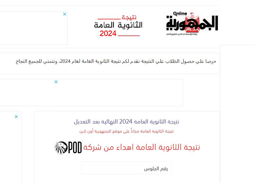 رابط نتيجة الثانوية العامة 2024 على الجمهورية أونلاين