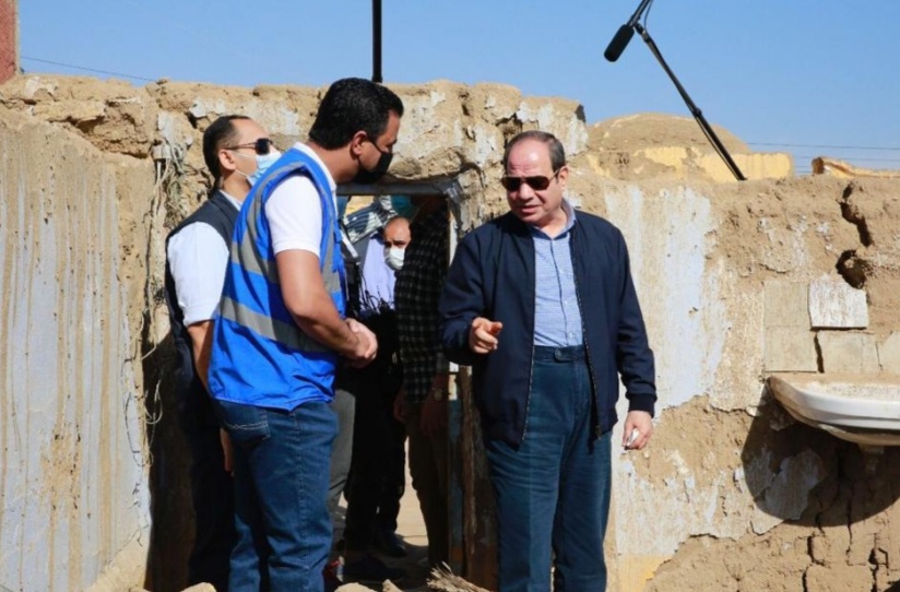 الرئيس السيسي يستمع لشرح من شباب مؤسسة «حياة كريمة» عن الجهود المبذولة في قرية غرب أسوان